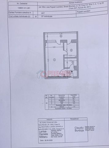 STU - SUPRAFAȚA TOTALĂ UTILĂ: 40.08 mp,SUPRAFAȚĂ TERASE/BALCOANE: 7.5 mp