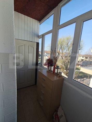 Caracteristici: hol de acces 1, 61mp , 1 baie cu geam 4,41mp, bucatarie inchisa cu geam de aerisire 5,35mp, 1 camera foarte generoasa din punct de vedere al spatiului 27 mp cu iesire pe un balcon cu suprafata totala de 6 mp. Suprafata totala a acestui imobil este de 44, 40mp + inca un hol de acces inchis cu geam termopan de aproximativ 6mp.