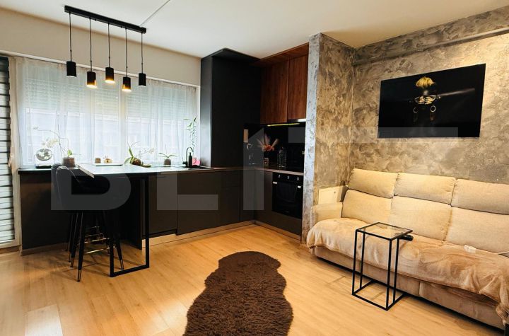 Blitz ofera spre vânzare o garsonieră modernă, cu o suprafață de 39 mp, situată într-un complex rezidențial, la etajul 4 din 4. Locuința este ideală atât pentru locuit, cât și pentru investiție, fiind complet mobilată și utilată, pregătită pentru mutare imediată.