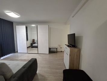 Vă propunem spre închiriere un studio spațios, amenajat cu bun gust și dotat cu toate echipamentele necesare pentru confortul zilnic.