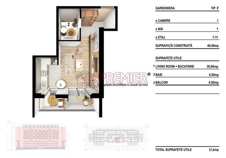 Suprafata utila: 37,6 mp + balcon 6,5 mp
