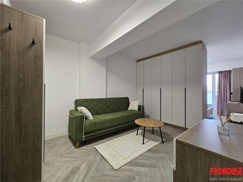 Studioul dispune de un dormitor, un living-hol, o bucatarie si o baie.
