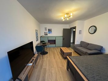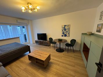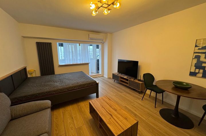 Va prezentam spre inchiriere o garsoniera luminoasa, situata la etajul 4 al unui imobil cu 7 niveluri, in zona Stirbei Voda. Blocul a fost construit in anul 1989 si nu prezinta risc seismic. E pozitionat pe o strada cu acces facil la mijloacele de transport in comun, la doi pasi fata de sediul Judecatoriei Sectorului 6. Este un bloc monolit cu o structura foarte solida, anvelopat termic. In apropiere, gasim Scoala Gimnaziala de Arte Nr. 3, Biserica Sfantul Stefan-Cuibul cu Barza, iar la cateva minute se afla Opera Nationala din Bucuresti si parcul. Garsoniera are vedere catre spate, fiind ferita de trafic intens si zgomot. Are o suprafata de 42mp si se compune dintr-o camera mare, cu pat matrimonial, canapea si acces la un balcon inchis, bucatarie mobilata si utilata si baie cu dus. Locuinta se afla intr-o stare foarte buna si este mobilata modern. Beneficiaza de un boiler pentru apa calda, asadar nu exista probleme in acest sens. Este echipata cu electrocasnice precum plita, hota, cuptorul electric, frigiderul, Smart TV-ul si e dotata cu aparat de aer conditionat. Parchetul, usile si obiectele de mobilier sunt de o foarte buna calitate. Imobilul dispune de lift si interfon, iar scara este bine intretinuta. Garsoniera poate fi un spatiu ideal pentru un cuplu sau o singura persoana.