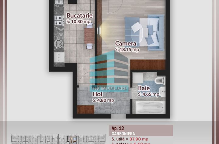 Va propun spre vanzare o Garsoniera generoasa de 44 mp la un pret avantajos - confort, liniste si intimitate