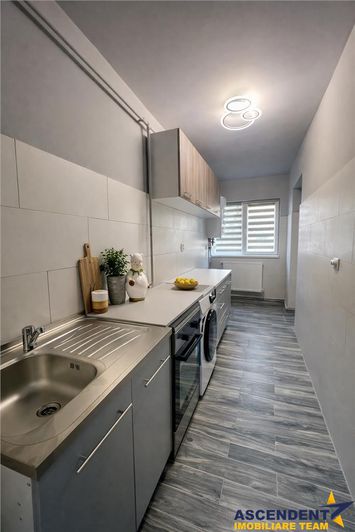 Rezidenta dispune de camera generoasa si luminoasa, bucatarie separata mobilata si utilata, baie aerisita cu geam pentru ventilatie naturala si hol functional. Interiorul este bine organizat, cu finisaje placute si mobilier practic, astfel incat fiecare zona sa fie folosita eficient.
