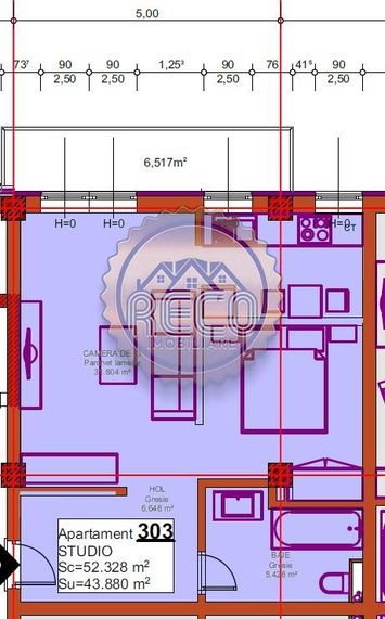 Apartament compus din: dormitor, living, bucatarie, hol, baie, balcon de 7 mp