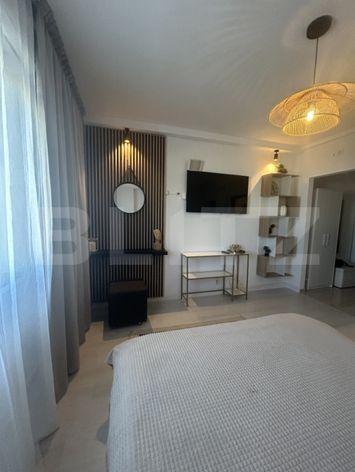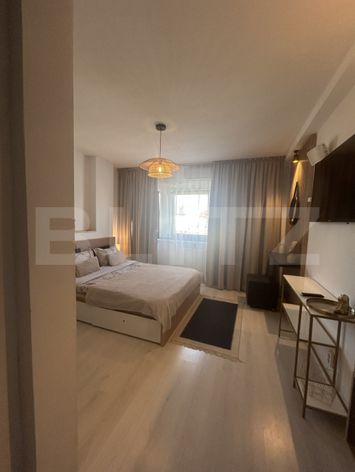 dormitor elegant, amenajat cu finisaje premium și riflaje decorative, care adaugă un plus de stil și rafinament;