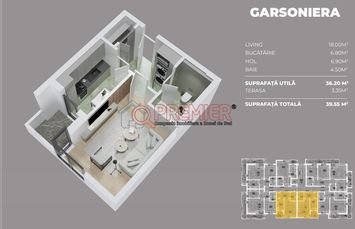 Suprafata utila toatala: 39.55 mp