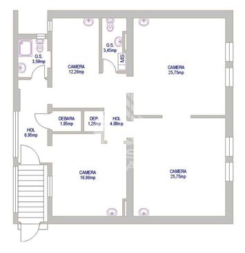 Compartimentare: 4 camere, 2 bai, 2 spatii de depozitare