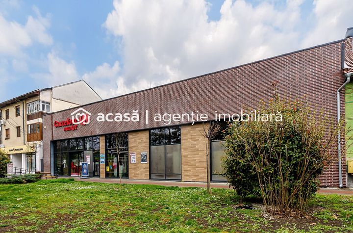 Format potrivit pentru retail alimentar, cu vizibilitate mare prin vitrina de 26 m.
