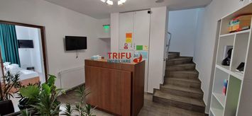 Va propunem spre inchiriere o pensiune, pretabila si pentru spatii de birouri, in Alba Iulia cartierul Cetate, avand 8 camere cu bai individuale, 2 bai de serviciu, balcon, bucatarie si locuri de parcare in curte.