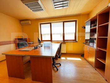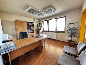 Parter (84 mp utili): 2 birouri (unul cu acces direct din stradă, compartimentabil în două), bucătărie, baie, arhivă, hol, casă a scării