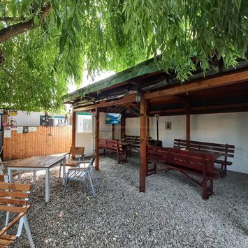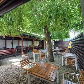 Terasa neacoperita total - 84mp, locuri la mesele exterioare, aprox. 20 pers.