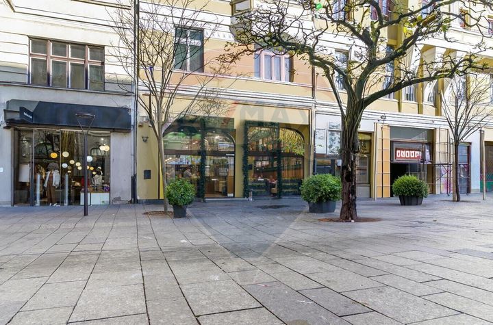 Cu un front stradal de 8,32 m, spatiul ofera o vizibilitate excelenta si un impact comercial remarcabil, beneficiind de un flux pietonal intens pe tot parcursul zilei. Pozitionarea strategica il recomanda pentru o gama variata de activitati: retail premium, showroom,, restaurant, cafenea, servicii sau concept store.