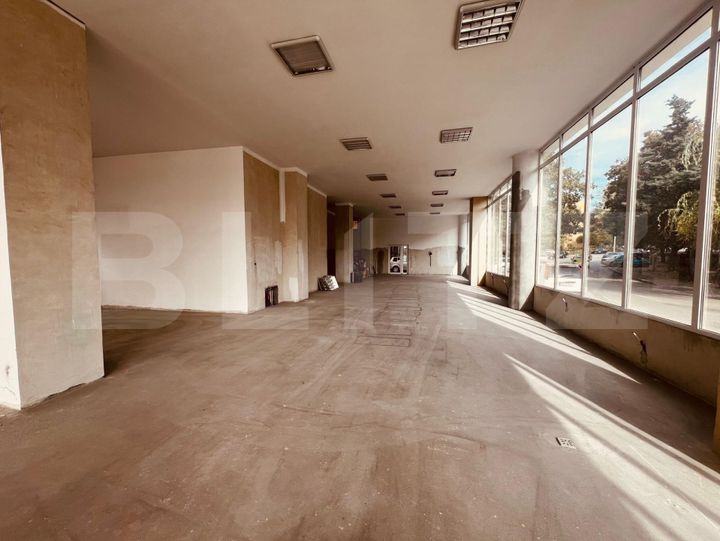 Spațiul este tip open space, ușor de compartimentat în funcție de nevoi, oferind o vitrină amplă pe toată lungimea fațadei – perfectă pentru branding, reclamă și vizibilitate maximă din stradă.