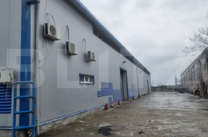 BLITZ va oferă spre vânzare hala noua si moderna,construita in 2013 cu o suprafață de 720mp. Este construită pe un teren de 1693 mp cu platforma betonata ,proiectata pentru preluarea traficului greu. Utilitati: apă, electricitate și canalizare. Are o inaltime de 6,5 metri, lățime de 12m și lungime de 54 de metri. Hala are spatii de birouri in suprafata de 140 mp,vestiar si grup sanitar independent.Locatia are zona de parcare betonata și este imprejmuita cu gard de protectie.Accesul TIR se face pe drum asfaltat .Este prevazuta cu pod rulant 7,5 t la interior si instalatia pentru montare la exterior daca se doreste.Hala are aviz ISU pentru incendiu pentru activitaea de depozitare.