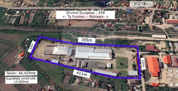 Va propun spre vanzare o proprietate industriala, teren de 44.425mp cu hale industriale de peste 10.000mp in Harlau Jud. Iasi, cu acces rapid din Drumul European E58.