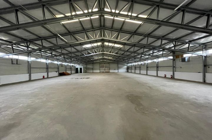 Constructia este realizata pe structura metalica cu panouri sandwich, asigurand un bun confort termic si durabilitate. Spatiul beneficiaza de acces auto si acces TIR, fiind potrivit pentru logistica sau productie.