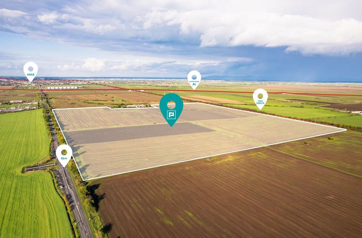 Situat la iesirea din localitatea Arad, in directia Timisoara, se afla un teren de 40 ha propus spre vanzare de agentia imobiliara PropertyLab. Terenul este situat pe drumul european E671, care ofera acces facil si rapid spre autostrada A1, ceea ce face proprietatea extrem de atractiva pentru companii care necesita acces rapid la aceasta autostrada importanta din Romania.