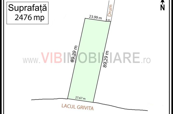 Locatie: Sisesti – Lac Grivita Suprafata: 2.476 mp Deschidere: 28 ml la lac Urbanism (PUG Bucuresti): zona L1d Regim de inaltime maxim: P+2E POT: 20% | CUT: 0.7 Teren liber, intabulat, fara constructii Pret: 250 EUR/mp (total 619.000 EUR)
