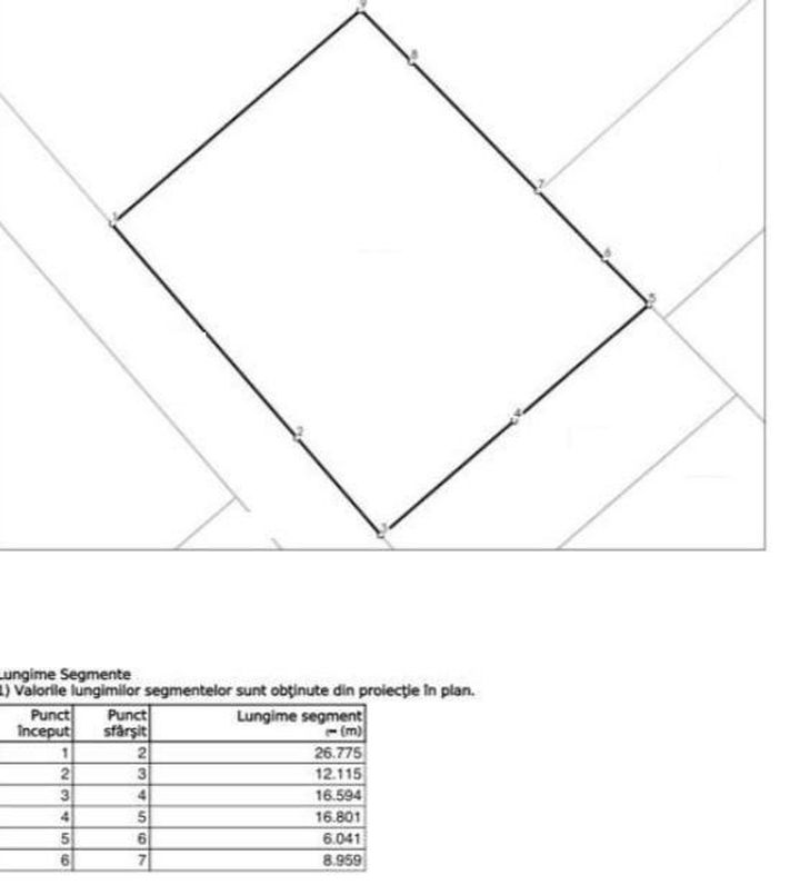 Suprafața 1252 mp front la strada 38,89ml și cota din drumul de servitute.