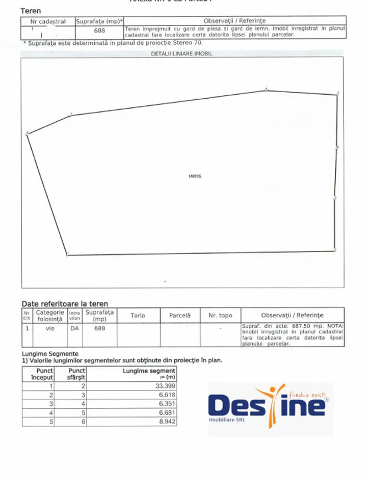 DESTINE IMOBILIARE Iași vă recomandă un TEREN INTRAVILAN avand o suprafata de 688 mp, în BUCIUM.