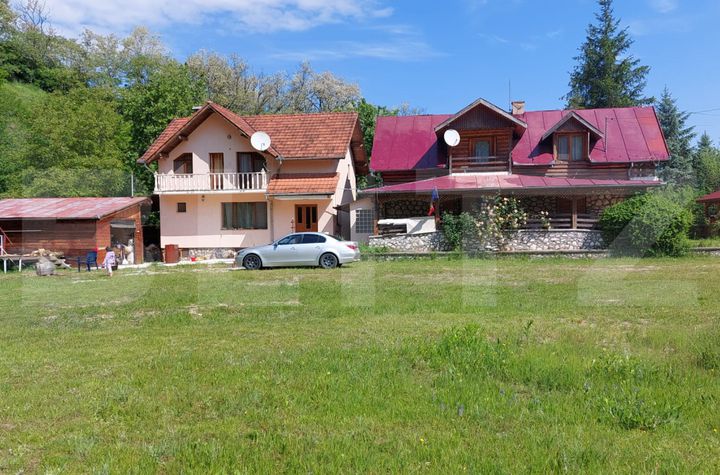 În exterior, regăsim o curte generoasă cu multiple facilități: două filigorii spațioase, ciubăr pentru relaxare, garaj și un teren liber cu potențial considerabil pentru amenajarea unei zone de agrement, extindere sau dezvoltare turistică.