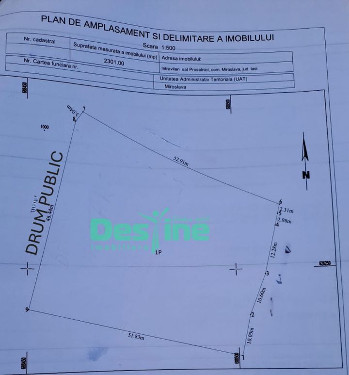 DESTINE IMOBILIARE vă propune spre vânzare un teren intravilan situat în zona Proselnici- Miroslava, o locație în plină dezvoltare, ideală pentru construcții rezidențiale sau investiție.