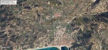 Teren construibil plat de 1.327 mp disponibil spre vânzare în Kalyvia Limenaria, Thassos.
