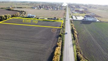 Detalii teren: suprafață totală: 8.000 mp, front stradal generos de 51,55ml, adâncime  155 ml, intravilan, acces excelent din drumul european.