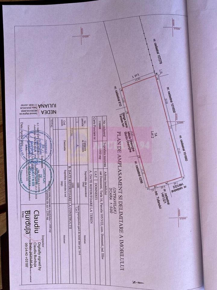Domnesti Str. Radului, teren de vanzare 1000 mp util + servitutea se ofera gratis.
