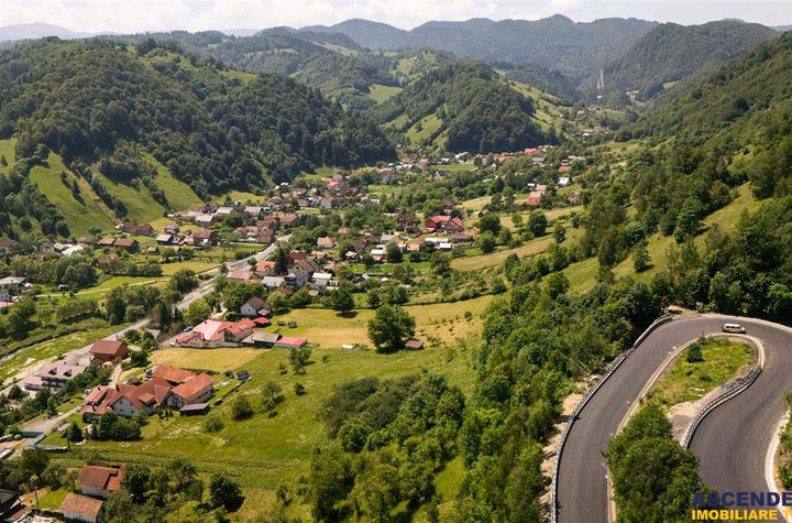 Pozitionat usor colinar la aproximativ 5 minute de drumul principal judetean, accesul se face pe un drum amenajat si asfaltat, pana la zona de case si pensiuni, unde se desfasoara terenul in suprafata totala de 4409 mp.