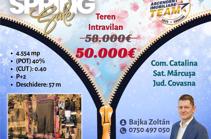 propune spre vanzare o REPREZENTARE IMOBILIARA, particularizata prin generoasa suprafata a unui teren intravilan, respectiv 4.554 mp in satul Marcusa la 5 km de la Cernat si DN11 (E574) pozitionat aproape de centrul localitatii inr-o strada linistita.