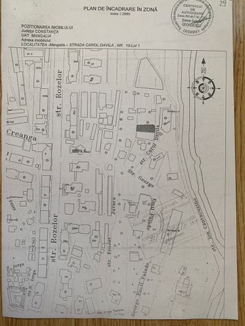 Caracteristici teren: autorizatie constructie, Coeficienti urbanistici: certificat urbanism, P.u.d., P.u.g., Acces: acces stradal, Strazi limitrofe: amenajate, Orientari: est, Vedere: vedere stradala, Vedere la mare