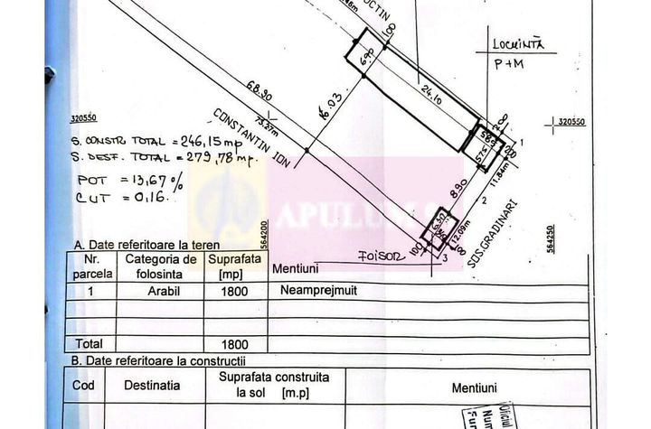 Identificare: intarusat, Caracteristici teren: parcelat, Construibil, Contine constructie, Acces: la șosea, Strazi limitrofe: amenajate, Asfaltate