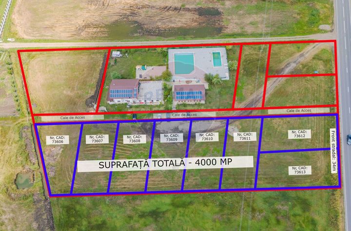 Terenul are 4.000mp si este parcelat in 8 loturi a cate 500 mp fiecare la care se adauga cota indiviza din calea de access.