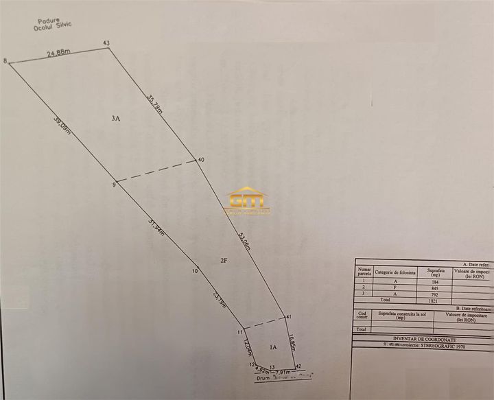Suprafața totală 1821 mp
