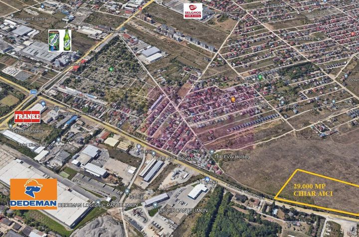 Teren compact 29.000 mp in localitatea Pantelimon, cu front stradal la Strada Carabinei (strada unde deja s-a realizat bransarea la apa) langa Soseaua de Centura - DNCB, pe partea cu Calea Ferata si acces evident la Calea Ferata ). Utilitatile sunt langa teren insa nu suntem bransati, terenul fiind liber de constructii. Frontul stradal la strada Carabinei (strada neamenajata - drum de pamant) este de 270 de metri liniari. Terenul este usor accesibil, din Voluntari si pana la teren se fac 5 minute pe Soseaua de Centura, proximitatea fata de Soseaua de Centura face ca terenul sa aiba potential pentru activitati prodictive nepoluante, deoarece langa teren, la 300-350ml este o zona de case-vile noi dar datorita proximitatii fata de DNCB (Soseaua de Centura) si de Calea Ferata terenul, care se alfa in extravilan in acest moment este propus pentru intrarea in intravilanul Pantelimon cu propunere pentru INDUSTRIAL (DEPOZITARE SI PRODUCTIE NEPOLUANTA) in Planul de Urbanism General care