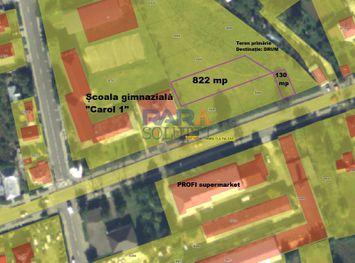 Terenul se invecineaza cu Scoala gimnaziala "Carol I" si se afla peste drum de supermarketul PROFI de pe strada Bogdan Dragos.