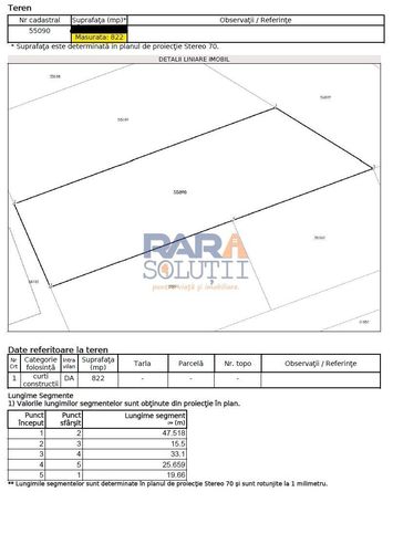 Lot 1: 822 mp, latime 15.5 metri, lungime 26 de metri