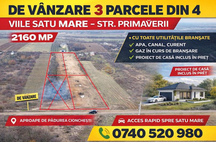 O oportunitate rara! Au mai ramas 3 parcele din 4, situate la intrarea in Viile Satu Mare, in cea mai cautata zona, aproape de padurea de la Cionchesti si cu acces rapid catre municipiul Satu Mare.