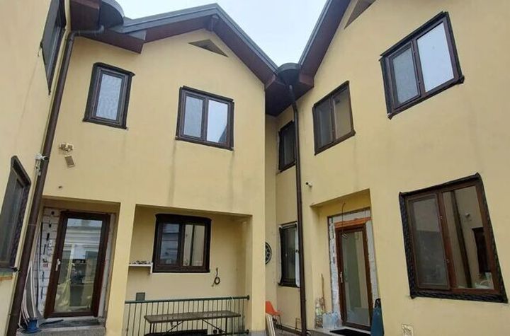 Etajul 1 - 70mp cu camera mare open space cu balcon, intrare in hol, baie, chicineta si 85mp cu 3 camere separate, 2 bai, bucatarie