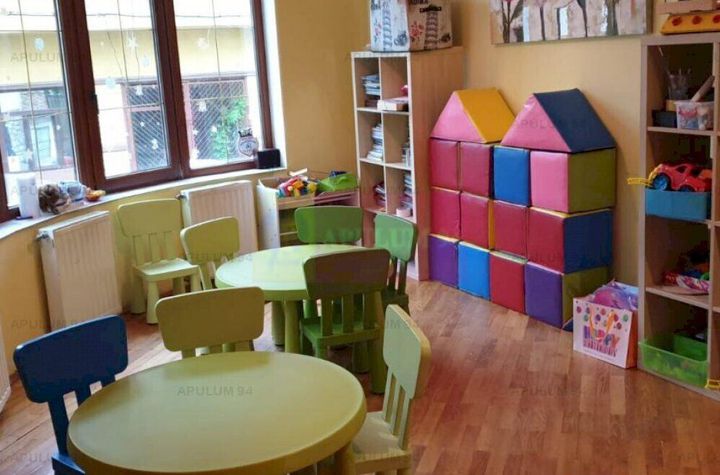 Vila este finalizata dupa anul 2004, structurata pe 4 nivele, Demisol, Parter, Etaj si Mansarda, cu o suprafata utila de aproximativ 120mp/nivel. La Demisol avem adapost de tip ALA, doua camere tehnice, centrala termica de mare putere, rezervor 1000 de litri apa menajera, bucatarie echipata cu aparatura profesionala, grup sanitar cu dus pentru personal la demisol. Parterul este primitor si luminos, cu zona de depozitare, cu sali pentru activitati si/sau odihna, luat masa, camera pentru citit cu semineu, zona de joaca, birou -personal administrativ, acces terasa si curte, curtea este suficient de spatioasa pentru tot felul de activitati, aproximativ 250mp, la etaj se urca pe o frumoasa scara, etaj unde avem deasemenea mai multe sali multifunctionale ce pot fi folosite atat pentru activitati diverse, tot aici avem si un grup sanitar spatios cu strictul necesar pentru cei mici, un balcon mare tip terasa cu vedere spre curtea proprie, mansarda este gandita ca un apartament pentru locuit dar se poate schimba ca destinatie daca se doreste, aici ne bucuram de spatii mari, ferestre tip velux, si de multa lumina naturala ca de fapt in intreaga vila. Inaltimea camerelor permite asfel orice artificiu de design si amplasarea de aparatura si mobilier.