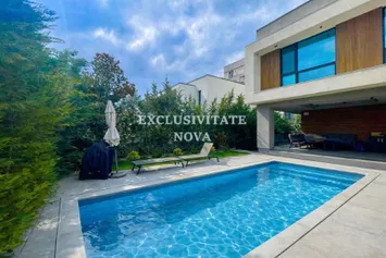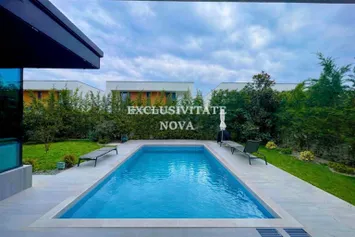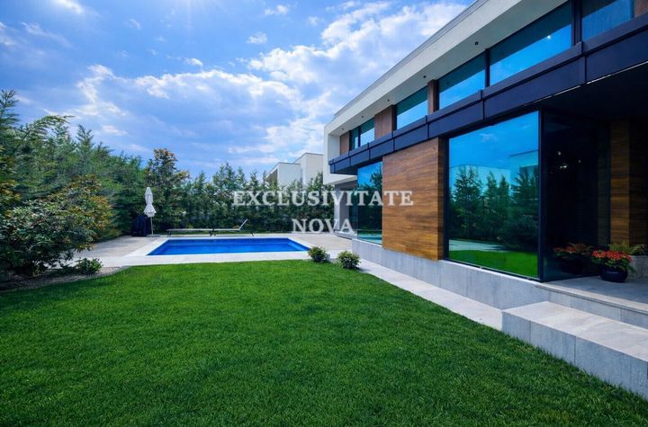 Mobilat: mobilat, Stil mobilier: modern, Stare mobilier: nou, Bucatarie: mobilata, Modern mobilata, Echipata, Curte: individuala, Piscina: individuala, Exterioara, Stadiu constructie: finalizat, Stare imobil: exceptionala, Tip vila: individuala, Strazi limitrofe: amenajate