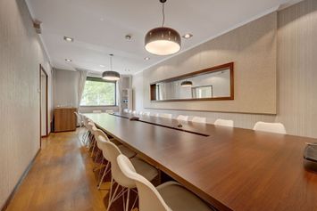 - Parter: vestibul, receptie, o camera mare / sala de conferinte, baie, o curte interioara, o bucatarie (acces spre un demisol), toate delimitate de un hol, cu iesire in spate pe terasa amenajata cu masa si scaune pentru recreere.