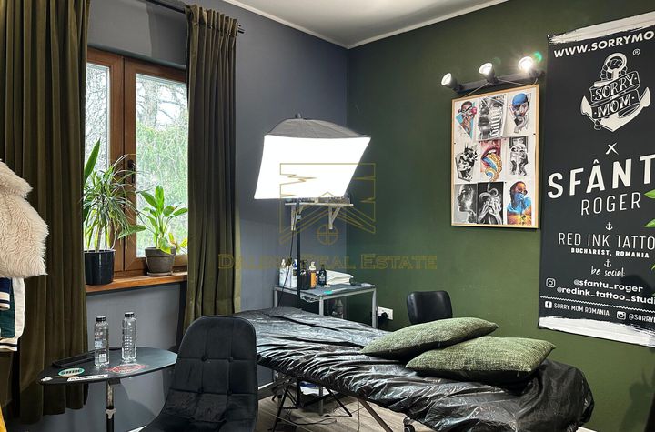 • Cladirea 1: demisol (57 m² utili, 3 compartimente tip wagon, hidroizolatie, curent 380 V), parter (64 m²), etaj (73 m²), mansarda (71 m²). Fosta fabrica de instrumente muzicale, transformata intr-un studio de tatuaj modern. Detalii: demisol complet refacut, centrala proprie, racord gaz.