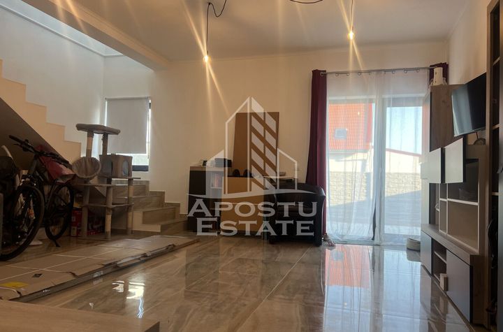 Agentia Imobiliara APOSTU ESTATE va propune spre vanzare o jumatate de duplex practica si bine compartimentata, ideala pentru o familie care isi doreste confort si intimitate intr-o zona linistita, in Sanandrei.
