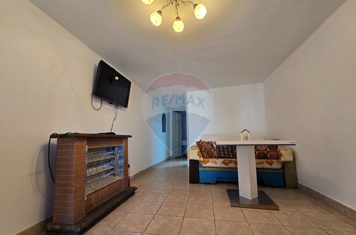 Casa principala are o suprafata de 71,6 mp si se afla in stadiu semifinisat, renovarea fiind deja inceputa si adusa pana la acest nivel. Compartimentarea este simpla si practica: doua camere, baie si hol, oferind posibilitatea noilor proprietari de a o finaliza dupa propriul gust.