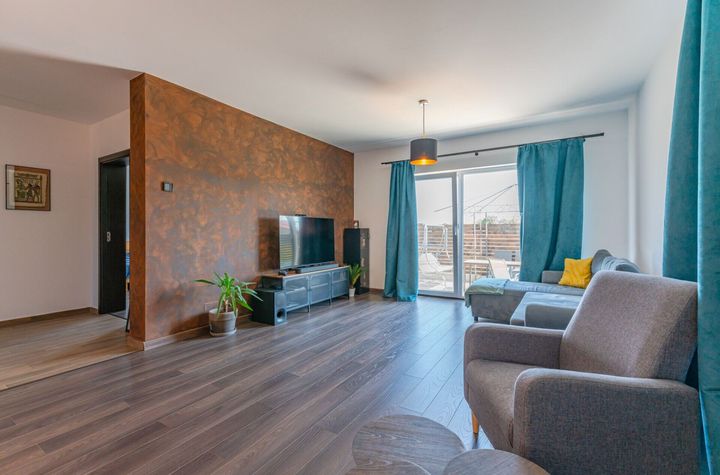 Locuinta este compartimentata in 3 camere (o camera de zi si doua dormitoare), o bucatarie si doua bai. Casa se inchiriaza mobilata si utilata, fiind dotata cu televizor, masina de spalat rufe, cuptor electric si plita pe gaz.
