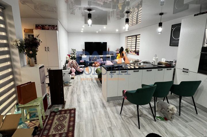 Casa cu living mare si bucatarie deschisa, 2 dormitoare si 2 bai, complet mobilata si utilata.